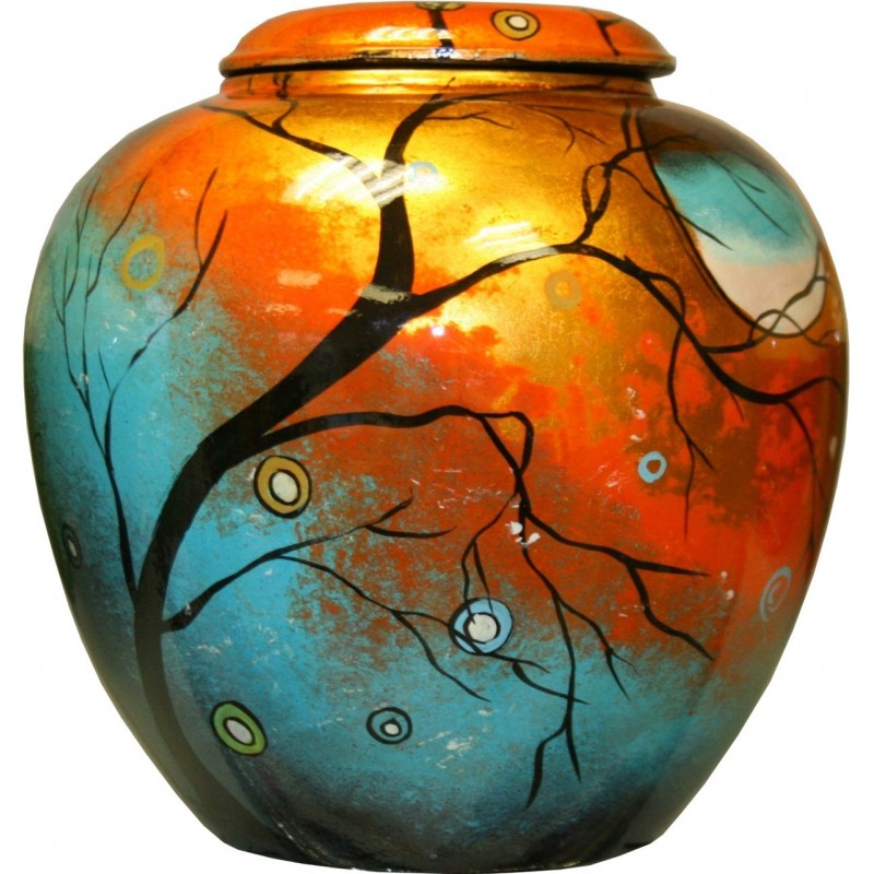 Descriptif urne céramique laquée - bleue et or - décor arbre