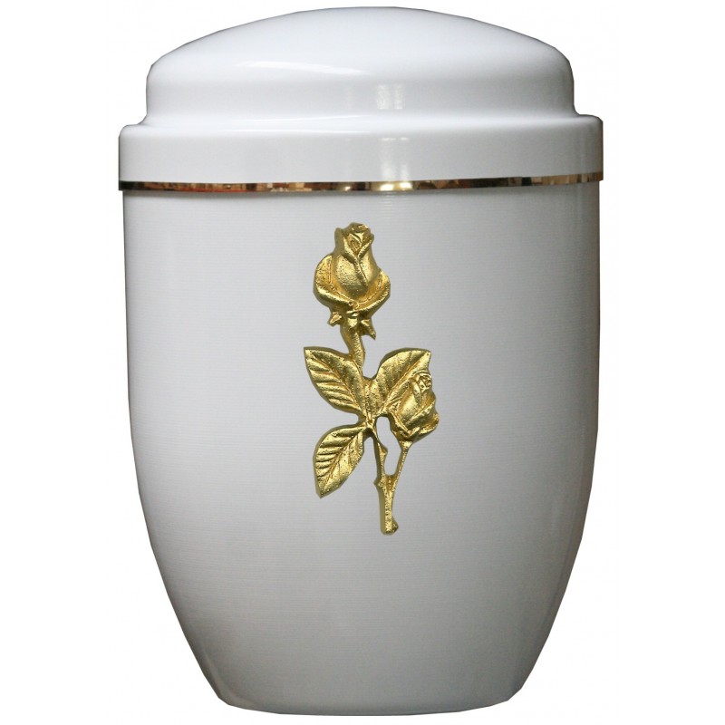 | Descriptif - | urne aluminium - blanc - décor emblème "rose" |