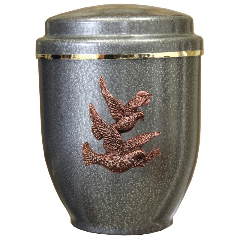 | Descriptif - | urne aluminium - grise - décor emblème "colombes" |