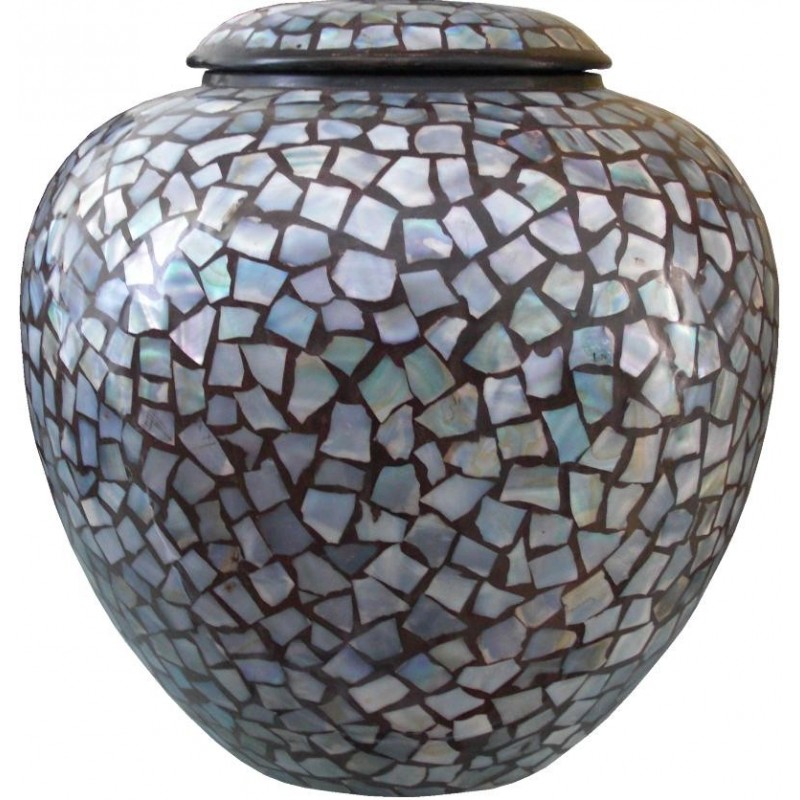 | Descriptif - | urne céramique laquée - décor nacre bleuté |